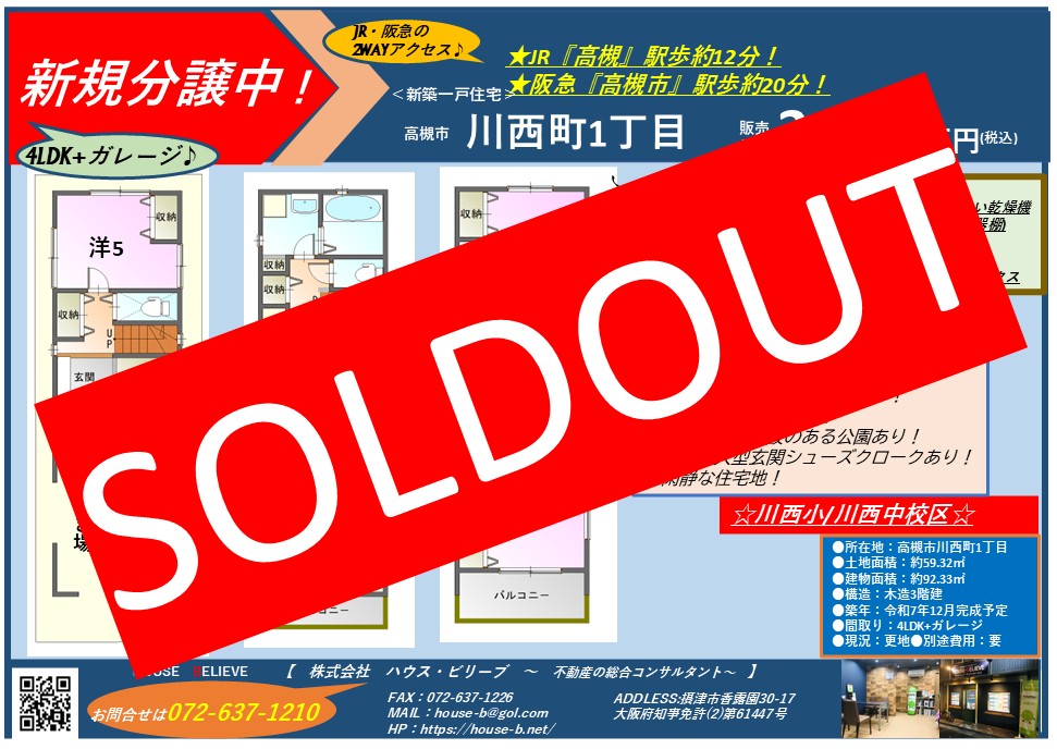 好評分譲中でした、高槻市川西町1丁目にて新築一戸建の方、この度M様とご縁がありご成約となりました♪