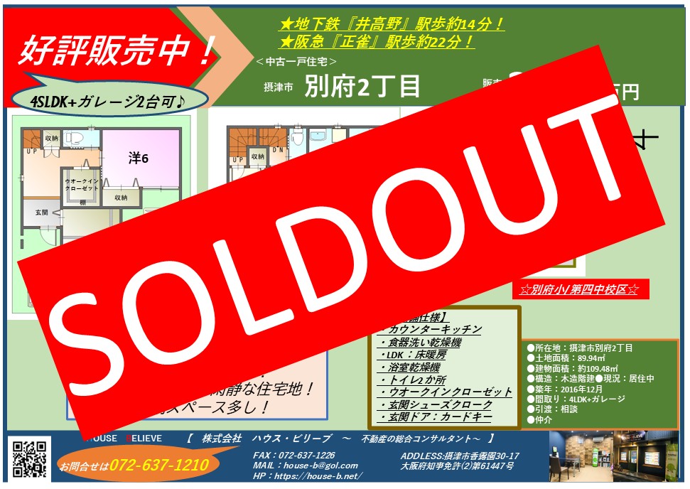 好評販売中でした、摂津市別府2丁目の中古一戸建住宅の方、この度「O様」とご縁がありご成約となりました♪
