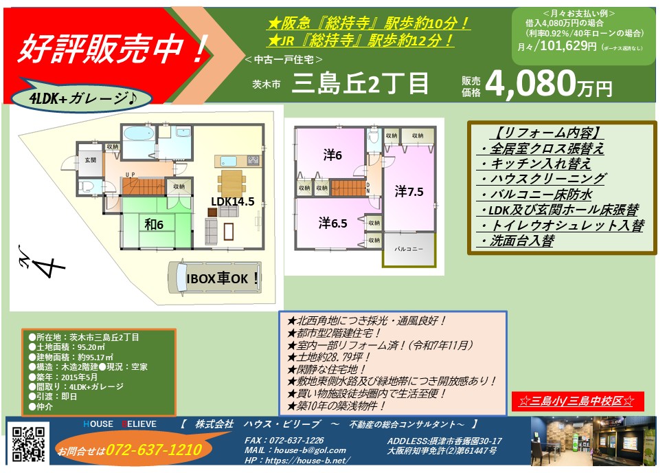 茨木市三島丘2丁目 中古一戸建 4LDK 4,080万円【販売開始】♪