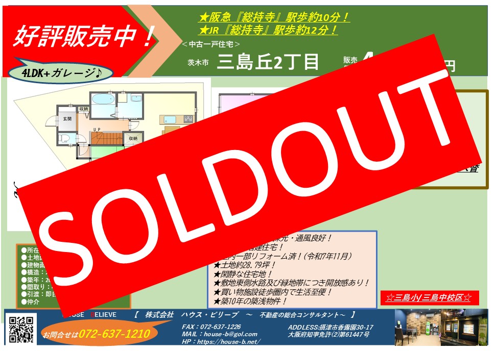 茨木市三島丘2丁目 中古一戸建 4LDK【ご成約】♪