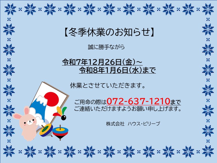 冬季休業のお知らせ