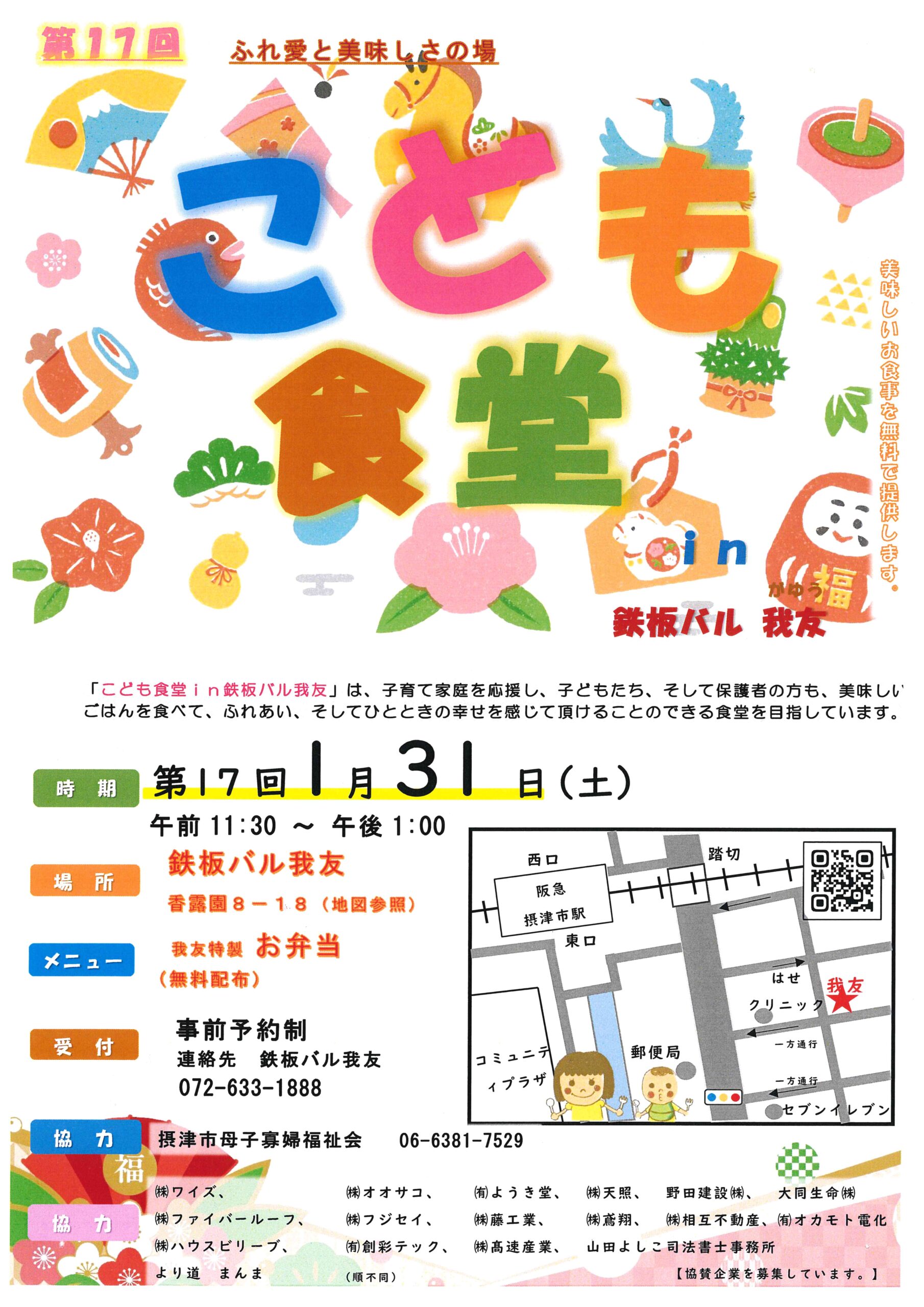 摂津市の同志企業と、不定期ですが協力協賛にて行っています【こども食堂】を1/31(土)に開催致します♪