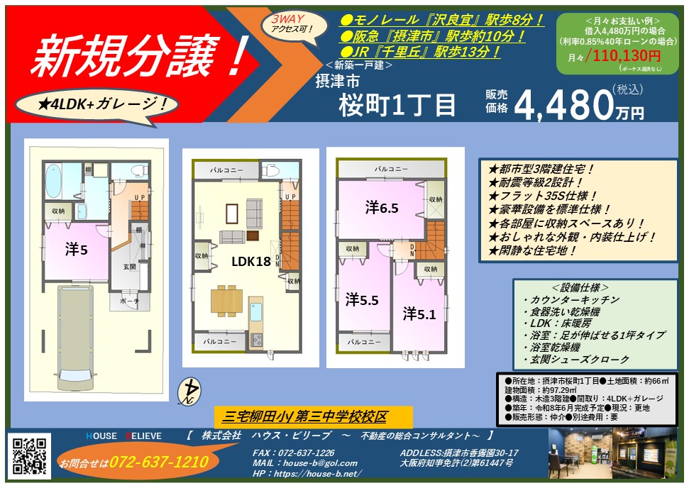摂津市桜町1丁目にて、新築一戸建の新規分譲を開始致します♪
