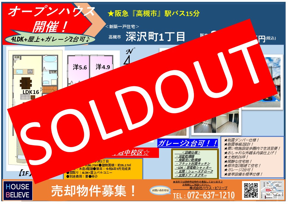 好評分譲中でした、高槻市深沢町1丁目新築一戸建モデルハウスの方、この度H様とご縁がありご成約となりました♪