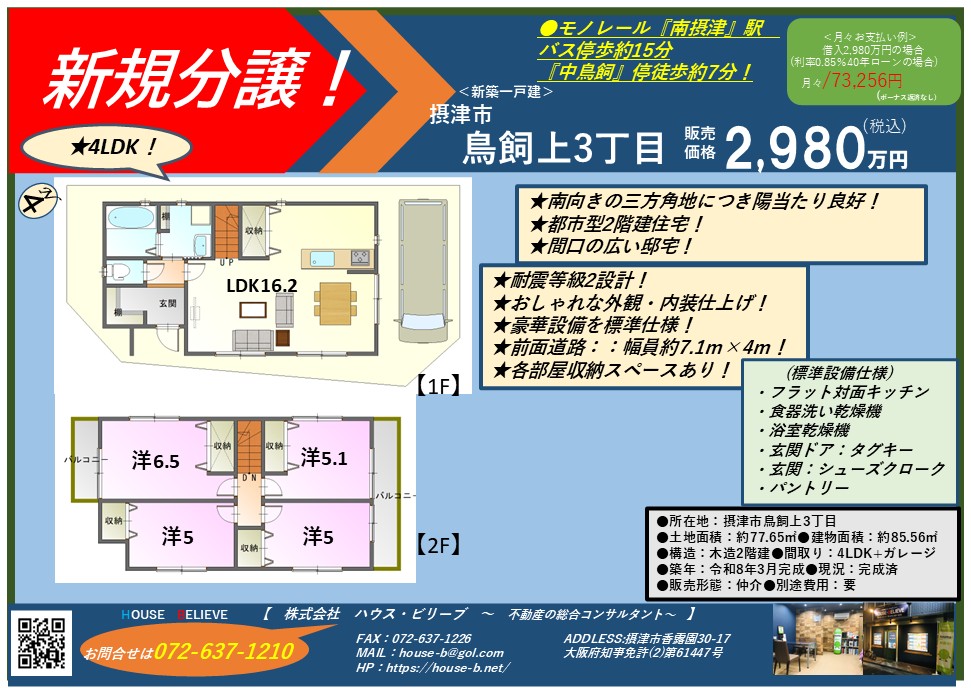 摂津市鳥飼上3丁目 新築モデルハウス 4LDK 2,980万円【堂々完成】♪
